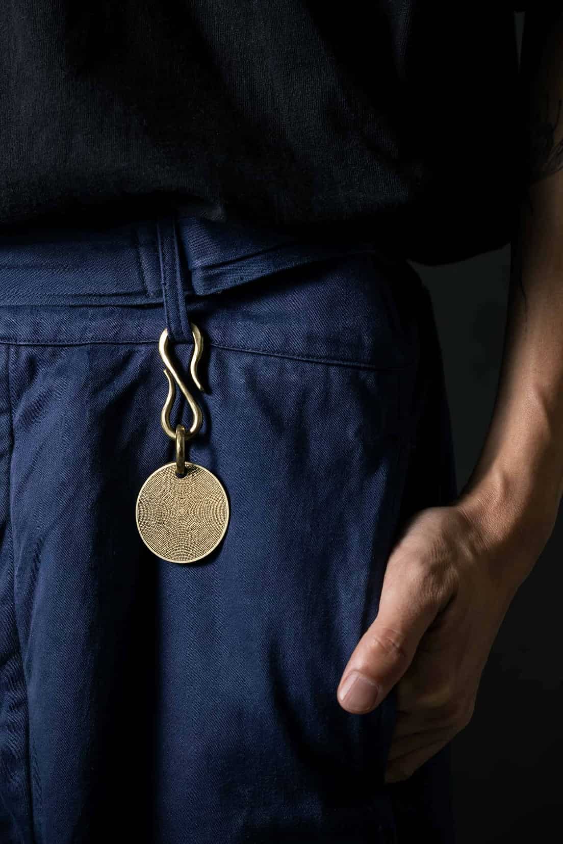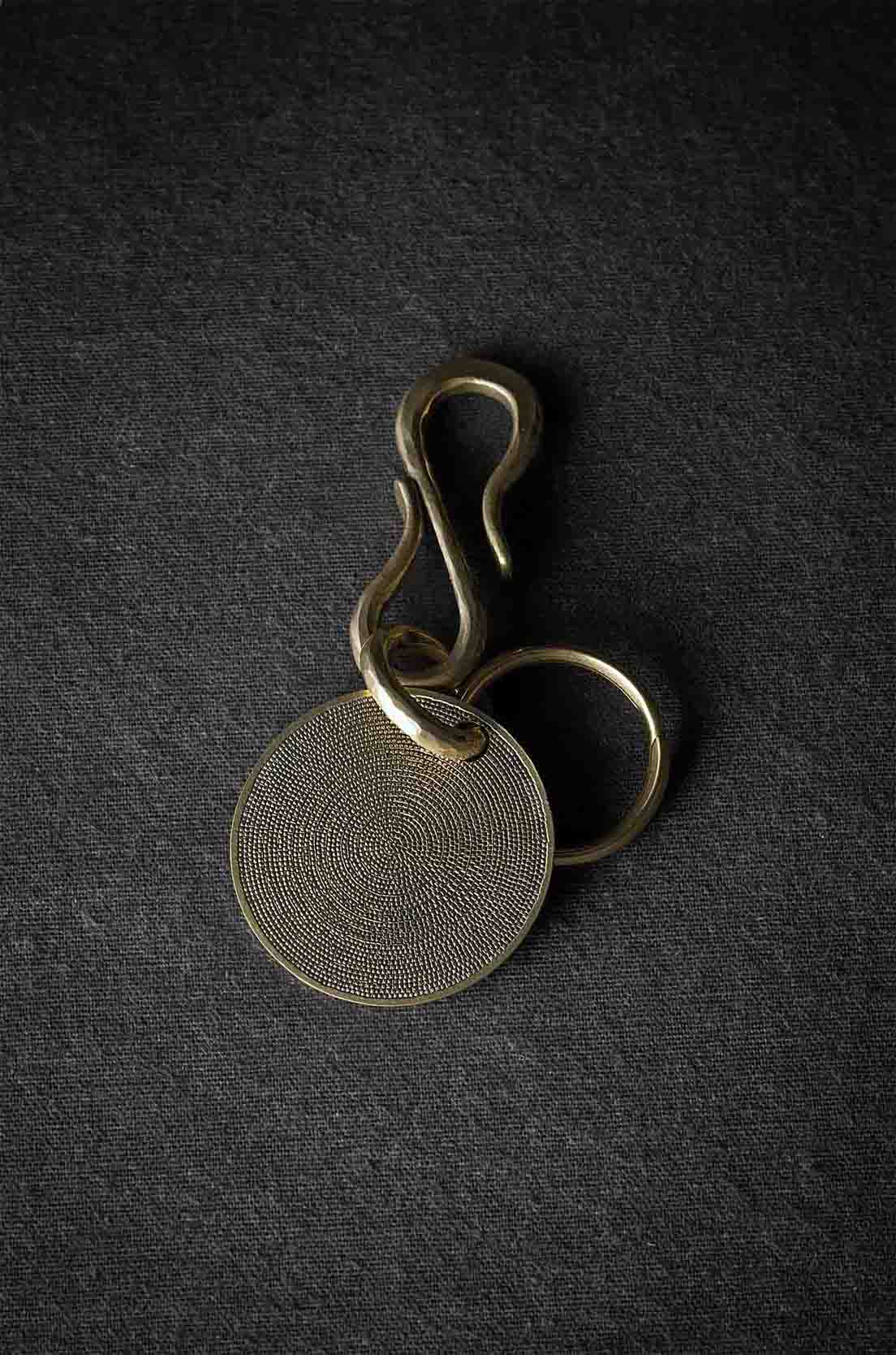 ミルグレイン = ミル打ち加工 にて柄入れをしたプレートのキーホルダー。