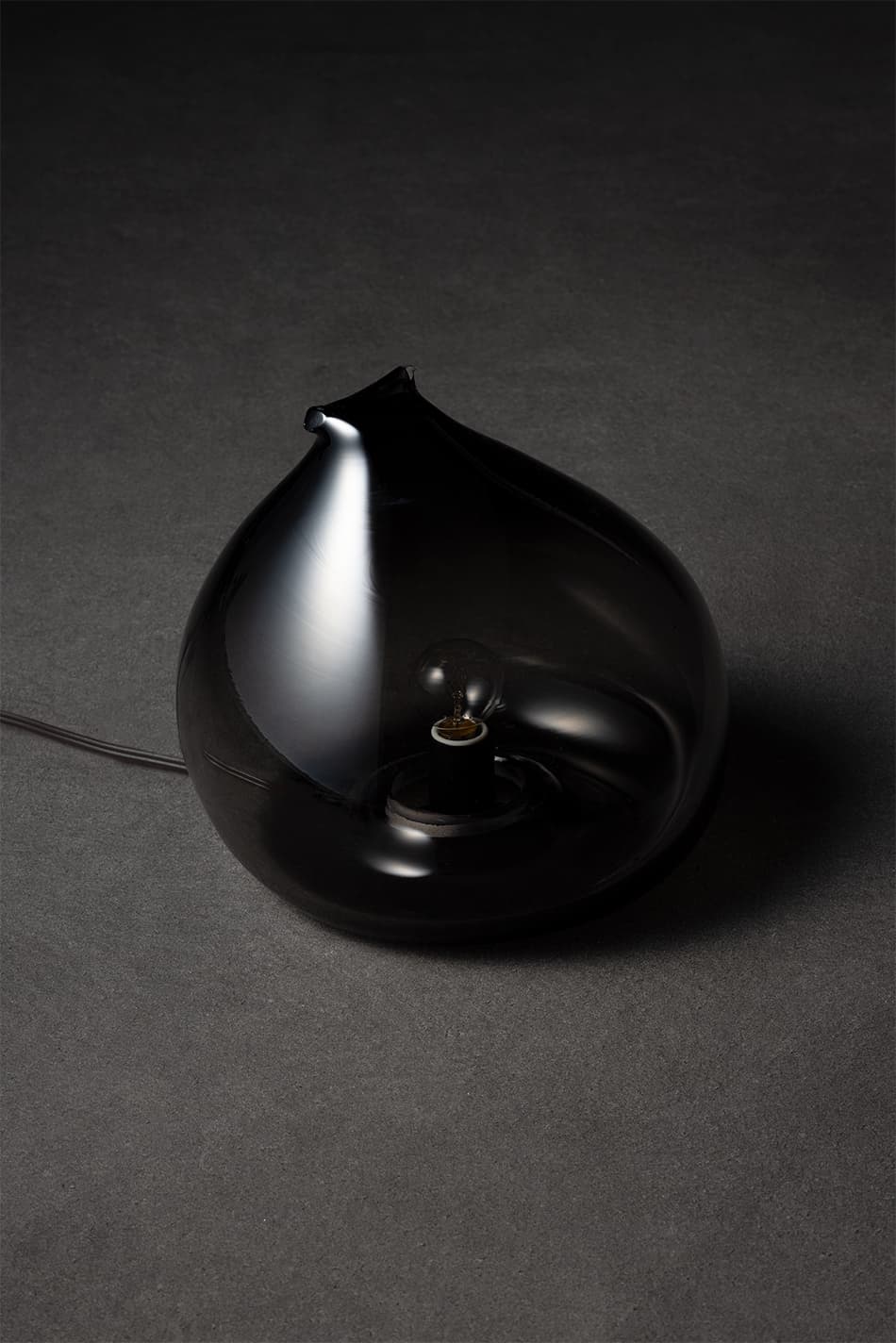 スモークガラス特有の深い色味と澄んだ質感が両立され、光源の輝きを穏やかに抑えた落ち着きのある光を生み出します。